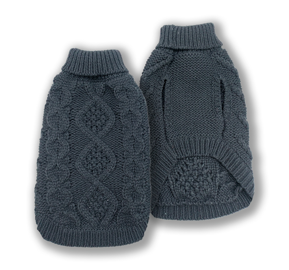 DOGGIE-Q Cable Knit Sweater Charcoal 6″