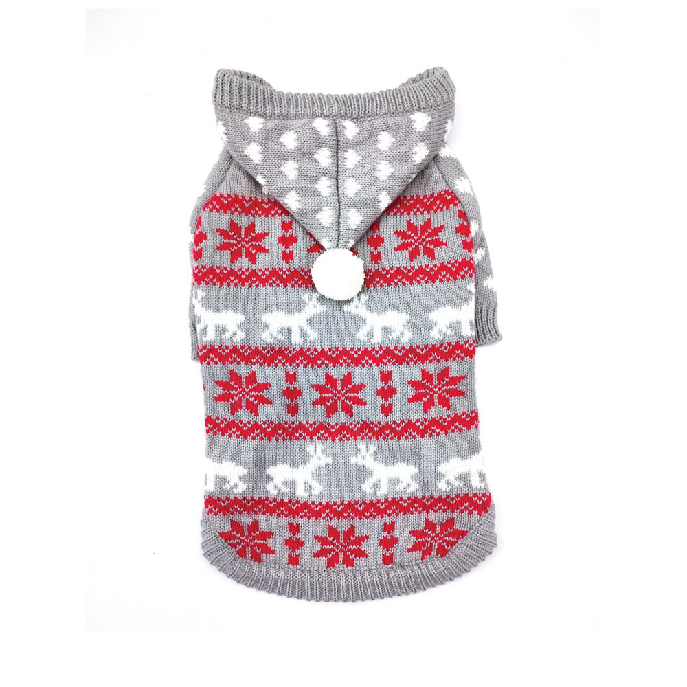 DOGGIE-Q Grey w/ Red Patterned Hoodie Sweater 18″