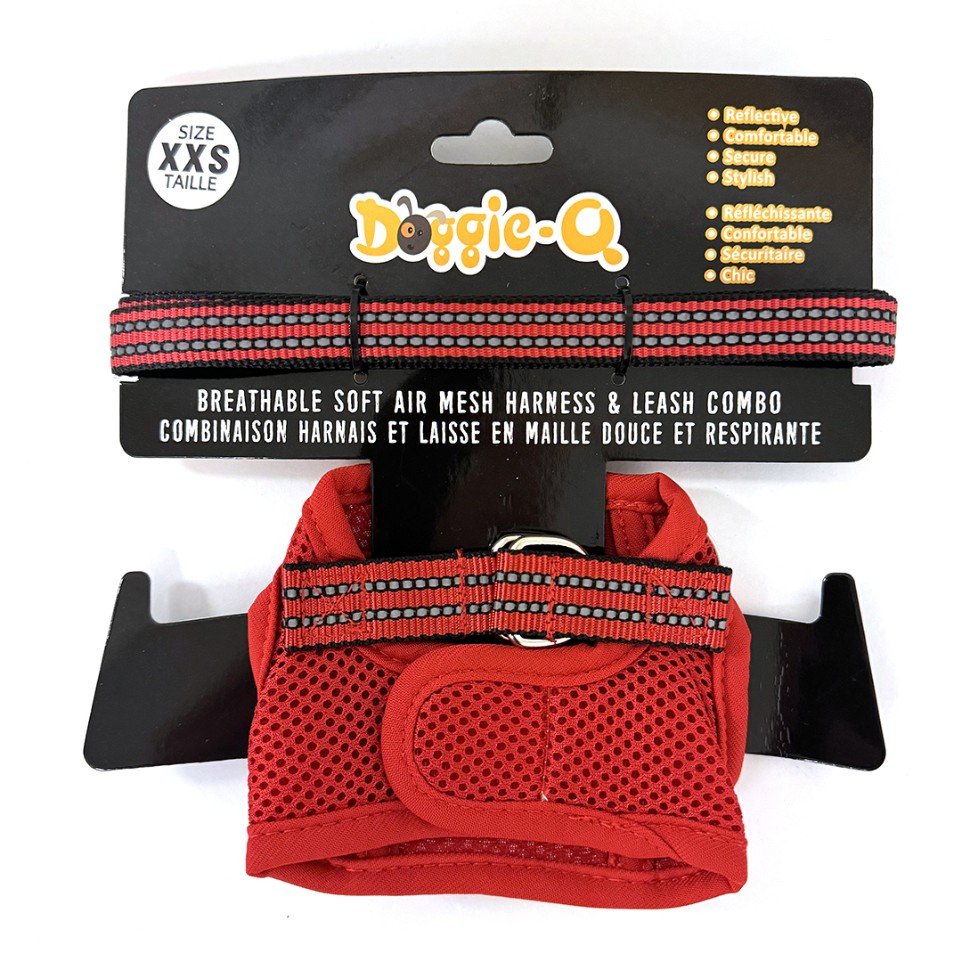 DOGGIE-Q Mesh Dog Harness/Leash combo RD XXS