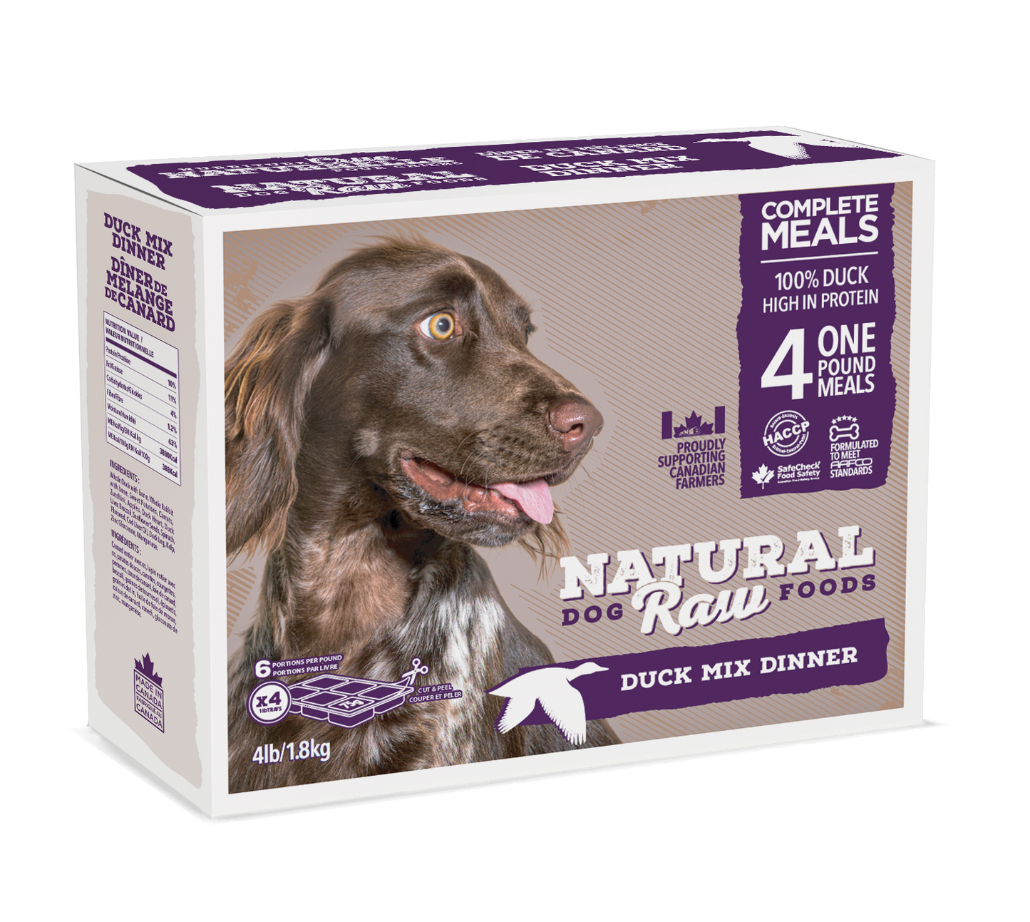 NATURAL RAW DOG FOOD Duck Mix Dinner 4lb – 6 portions/lb