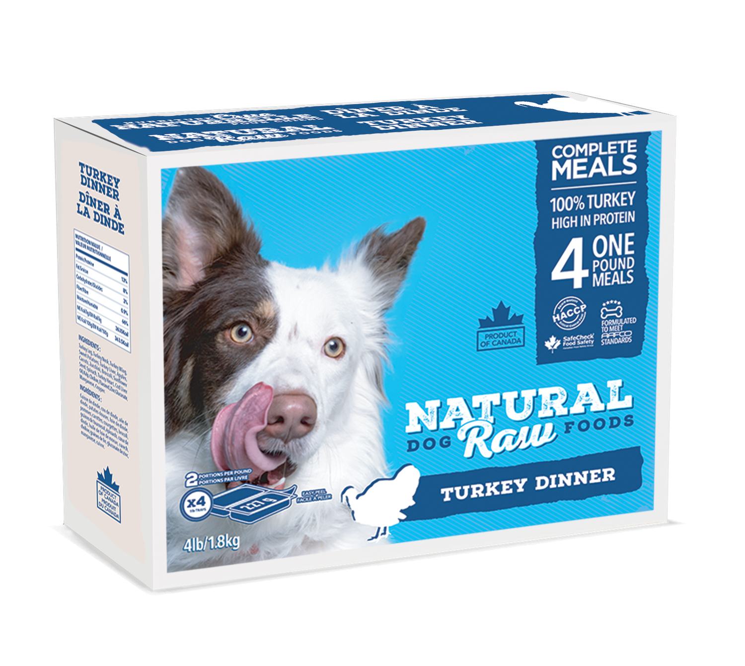 NATURAL RAW DOG FOOD Turkey Dinner 4lb – 2 portions/lb