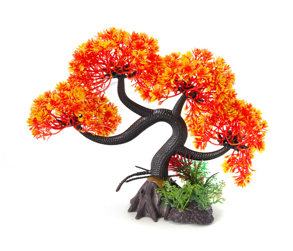 AQUA-FIT Orange Slanting Bonsai Plastic Plant 11″