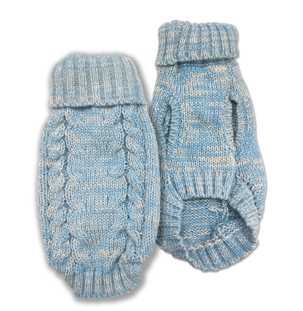 DOGGIE-Q Double Knit Multi Colour Marled Light Blue Sweater 10″