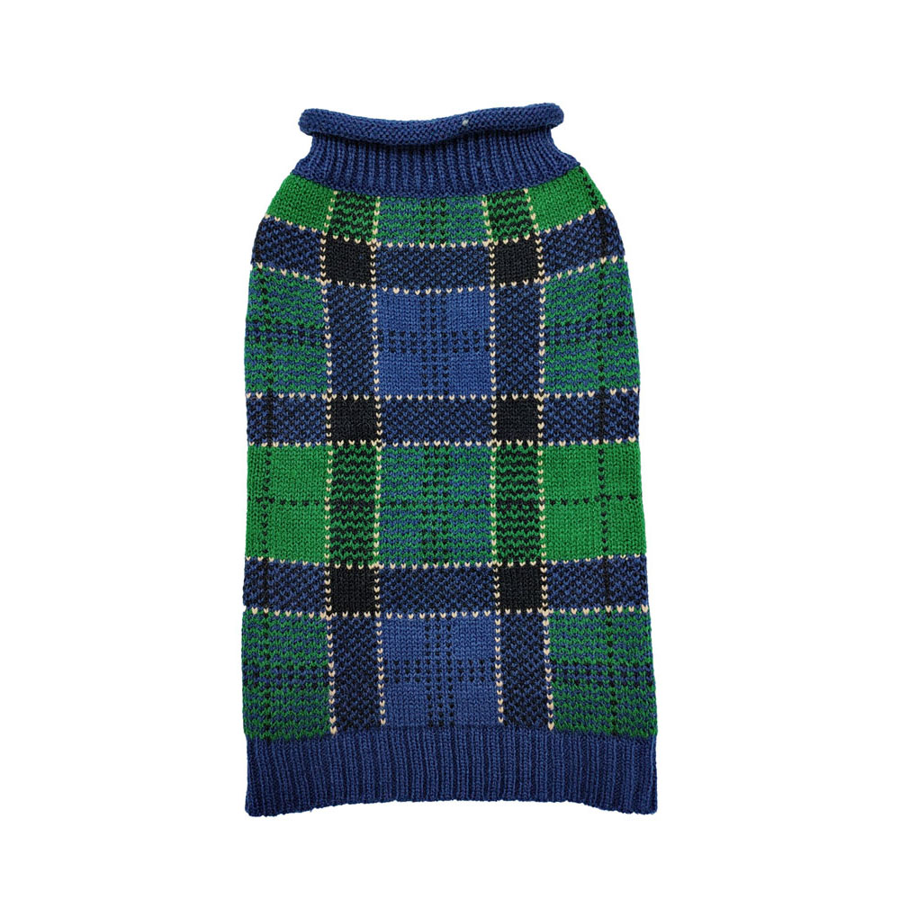 DOGGIE-Q Double Knit Plaid Sweater Blue/Green 16″