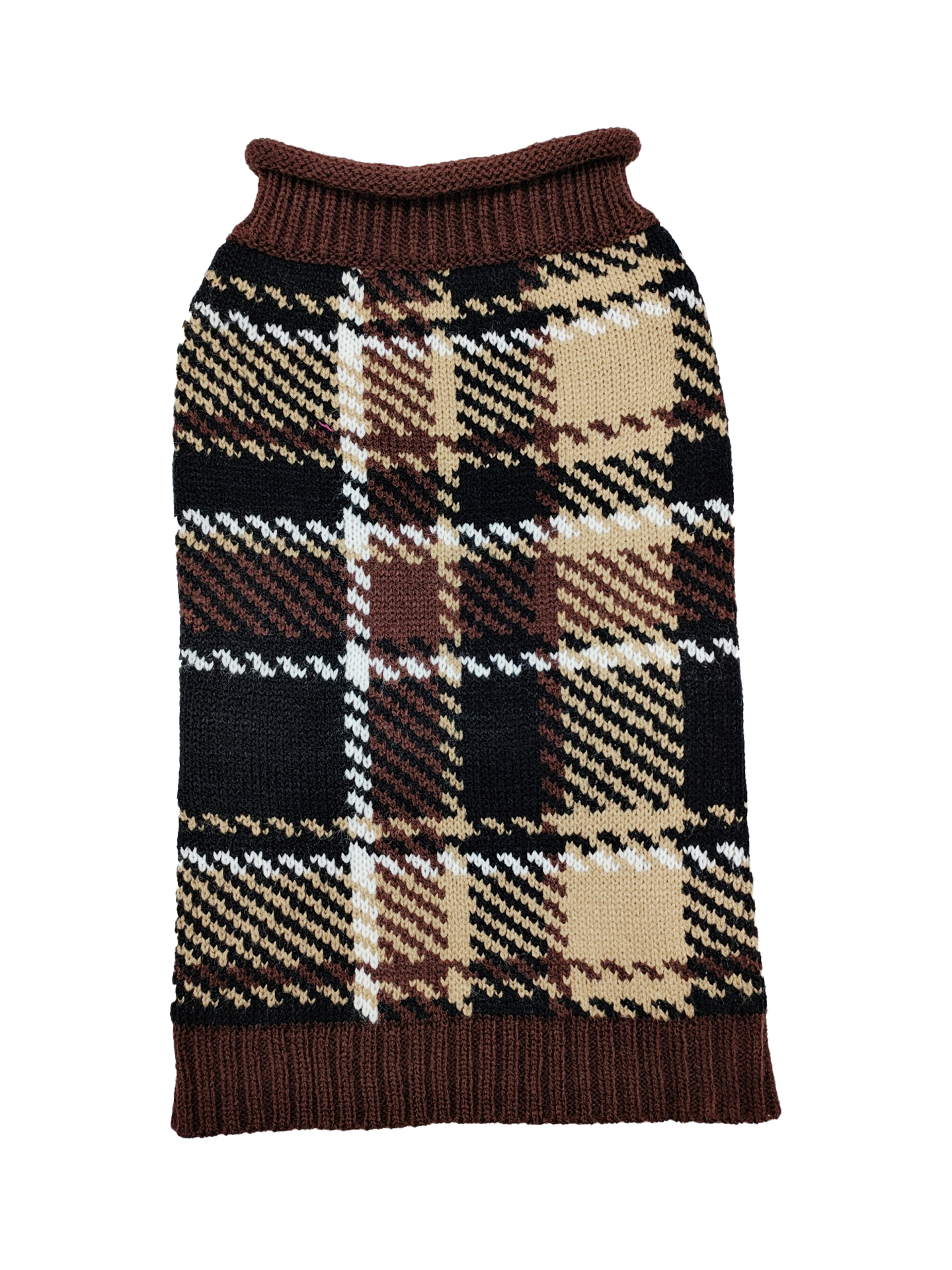 DOGGIE-Q Double Knit Plaid Sweater Brown 6″
