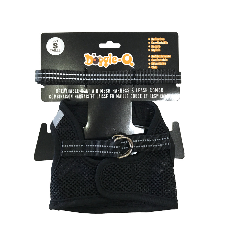 DOGGIE-Q Mesh Dog Harness/Leash combo BK S
